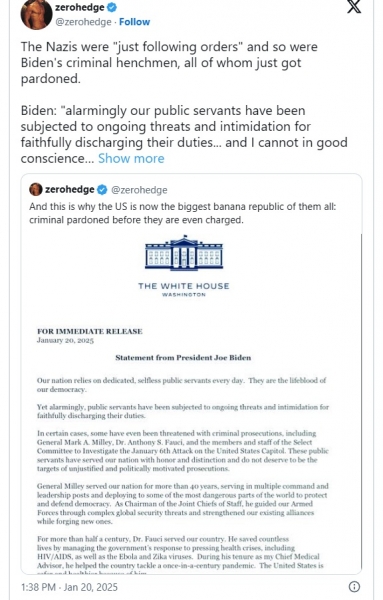 ZeroHedhe je o Xuju zapisal: Nacisti so "samo sledili ukazom", prav tako Bidnovi zločinski privrženci, ki so bili pravkar pomilostiti.