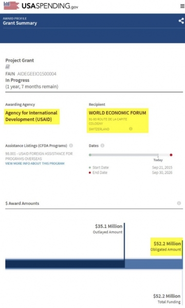 G. Schwabu verjetno ne bo všeč, če bo financiranje njegovih načrtov za prevzem postalo vse bolj negotova. Različni viri novic so prejšnjo soboto poročali, da je Urad za vladno učinkovitost ustavil prenos 52 milijonov dolarjev na WEF.