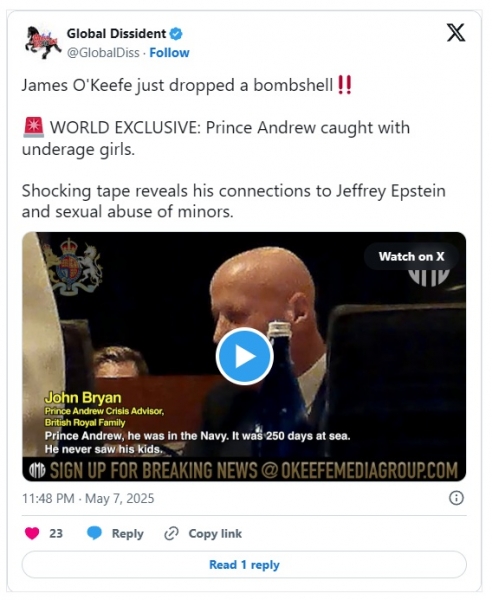 V novem, eksplozivnem poročilu Jamesa O'Keefeja, nekdanjega tesnega svetovalca britanske kraljeve družine, ameriškega poslovneža Johna Bryana, razkriva šokantne trditve o princu Andrewu v tajno posnetem pogovoru – vključno s spolnimi odnosi z mladoletnimi dekleti in globoko povezavo z obsojenim pedofilom Jeffreyjem Epsteinom.