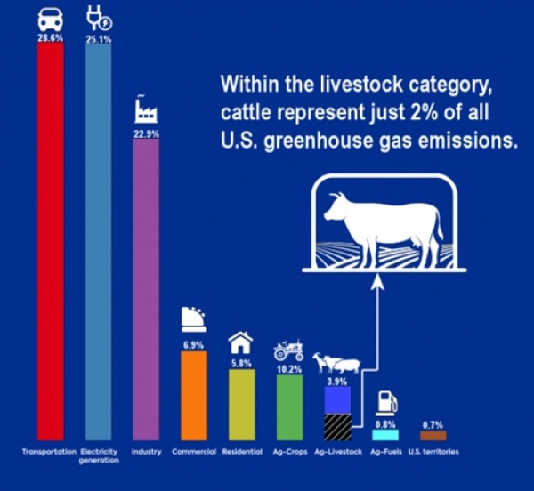 Po podatkih ameriške Agencije za varstvo okolja (EPA) je preprosto napačno trditi, da živinoreja pomembno prispeva k emisijam, kaj šele k globalnim podnebnim spremembam.