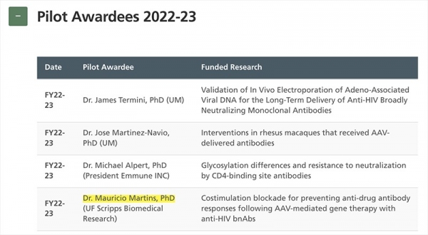 U19AI149646 – 13,9 milijona dolarjev otroški bolnišnici v Bostonu (genetsko zdravljenje za HIV)