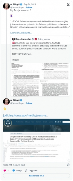 Za te korporacije svoboda izražanja ni prepričanje, temveč spremenljivka – odvisna od splošne politične klime. Vendar pa cenzurni stroj ne miruje – le začasno je ustavljen, dokler se ne pojavi naslednja politično motivirana kampanja.