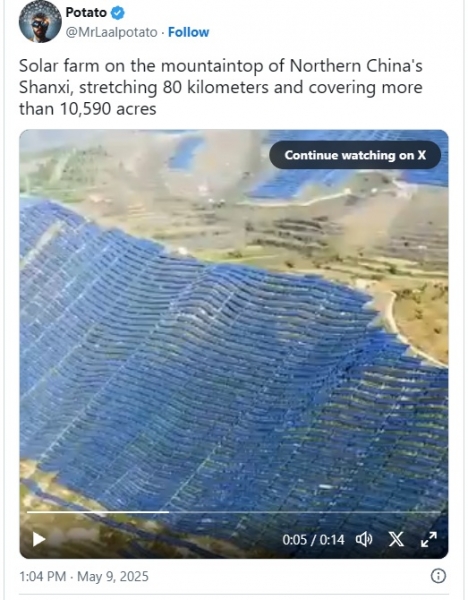 Celotna gorska območja so prekrita s sončnimi elektrarnami.