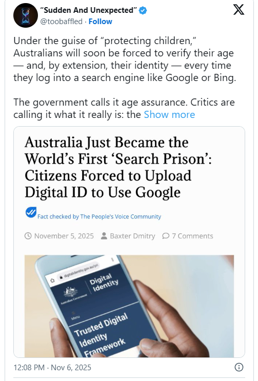 Vzemimo za primer britanskega premierja Keira Starmerja. Predstavlja se kot zaskrbljeni »oče naroda« in Silicijevi dolini sporoča: »Če to pomeni boj z velikimi družbenimi omrežji, naj pridejo!« Tudi francoski predsednik Emmanuel Macron daje velike izjave: »Možgani naših otrok niso naprodaj.« In seveda je močno vpletena tudi birokracija EU pod vodstvom Ursule von der Leyen. V Bruslju že delajo na »mini denarnici« za preverjanje starosti – predhodnici digitalne identitete EU, ki nam bo vsiljena. Od Canberre do Bruslja je scenarij popolnoma enak: elite uprizarjajo lažni boj proti velikim tehnološkim podjetjem.