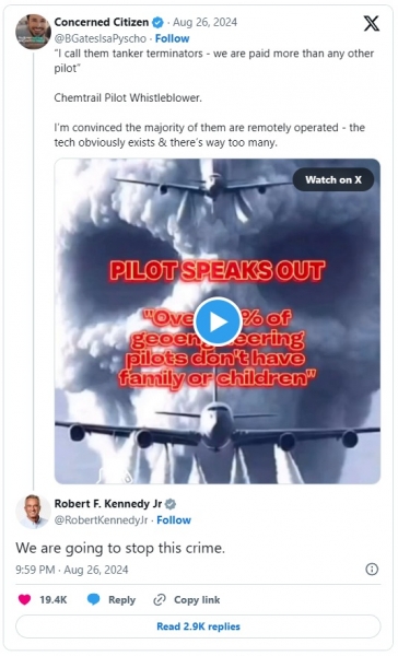 »Poglejte vse črte iz letala. "Vse sem jih opazoval," je nadalj in dodal: "Nekateri čez nekaj časa nehajo škropiti in nato začnejo znova."