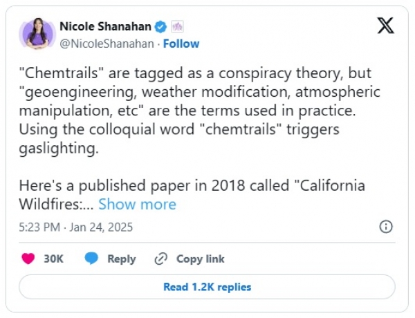 V petkovi objavi na Instagramu je igralec zapisal, da se je zbudil ob jasnem modrem nebu, ki ga je ves dan videl pokrito z letali, ki so "škropila", in pozval vladne uradnike Floride, naj raziščejo in ugotovijo, kdo je škropil.