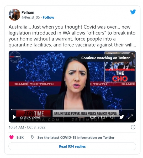 Toda ta novi zakon nakazuje, da bi lahko prebivalce Zahodne Avstralije, če bi razglasili še eno izredno stanje zaradi COVID-19, prisilno odstranili iz svojih domov in jih prisilili, da se "podredijo" vsem "postopkom za preprečevanje in obvladovanje okužb", ki se jim zdijo "razumni".