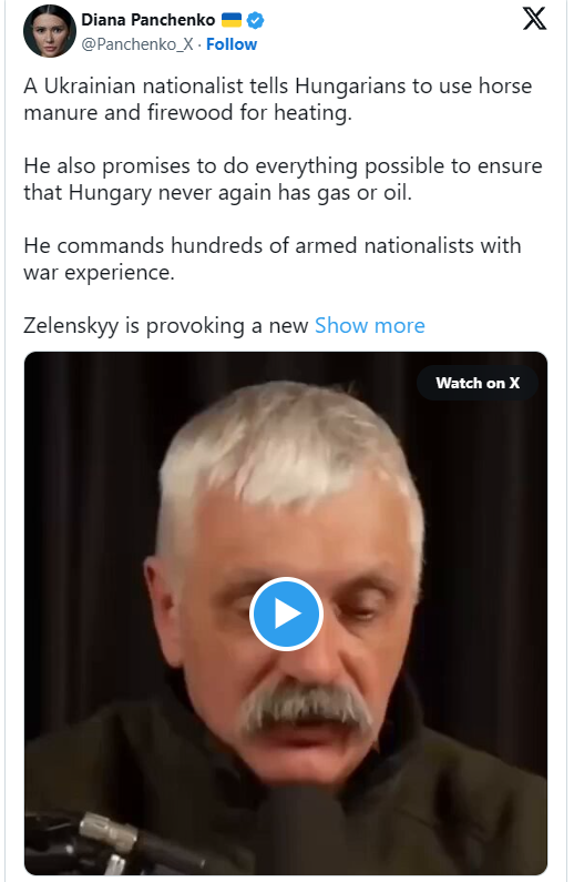 Ukrajina že leta zlorablja evropske dobave plina kot orožje za izsiljevanje Evrope. Severni tok bi se izognil Ukrajini; bil je razstreljen. Dobave Družbe so blokirane. Ukrajinski voditelji plačancev se odkrito posmehujejo evropskim državam in predlagajo, da Madžarska in Slovaška preprosto ogrevata svoje domove s konjskim gnojem in drvmi.
